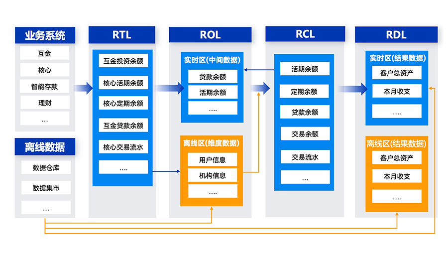 · RDL:數據服務層,將RCL層數據進行指標化加工,包括分析、應用匯總類指標以及明細數據;分為實時區和離線區,實時區存放實時指標結果,離線區存放每日離線指標結果,用于數據保底與實時數據校驗。