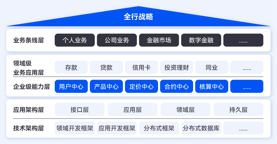 為深入推進數字化轉型,提升“以客戶為中心”的用戶服務體驗,結合整體數字化轉型戰(zhàn)略目標與路徑,借鑒互聯網金融與金融科技的最佳實踐,建設復用能力強、面向未來創(chuàng)新需求、敏捷、共享、開放、高效的企業(yè)級業(yè)務中臺,可達到“純渠道、厚中臺、穩(wěn)后臺”的整體架構模式,實現業(yè)務敏捷創(chuàng)新和高效運營,滿足全行的戰(zhàn)略。