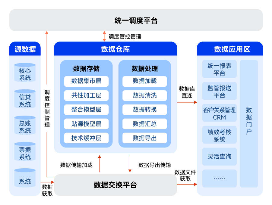 任務調度:采用長亮科技企業級調度平臺,高效管理數據倉庫批量任務,縮短批量時間窗口,降低運維成本。