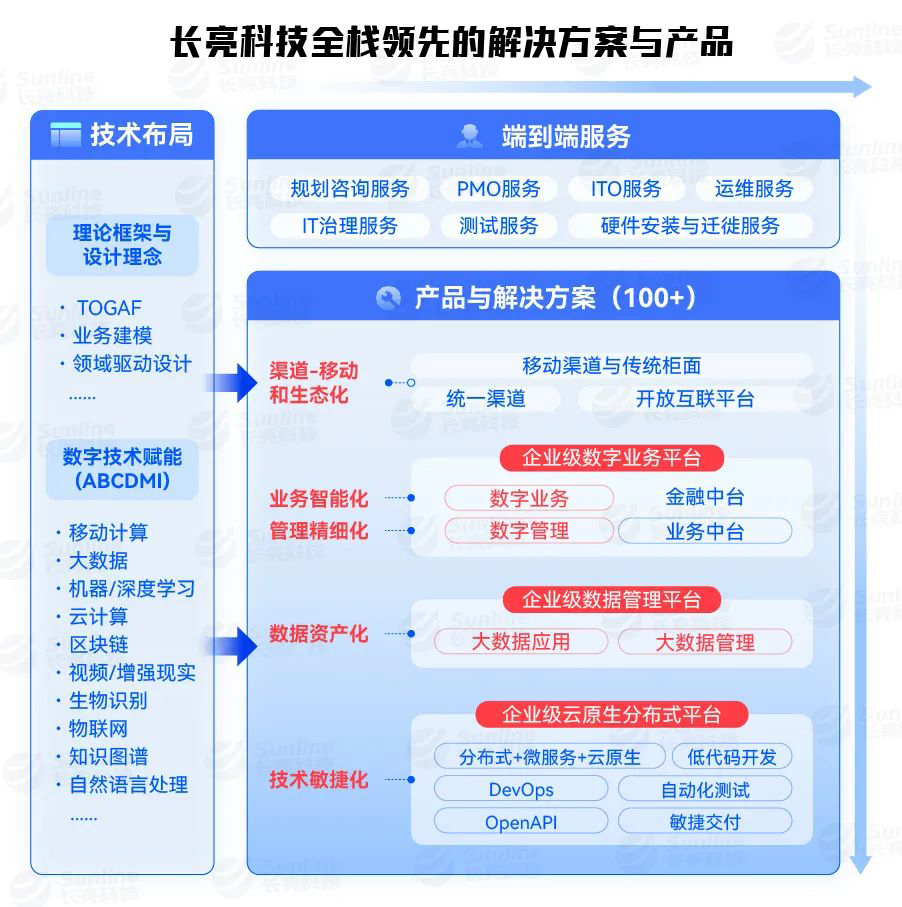 長亮科技作為數(shù)字化轉(zhuǎn)型的先鋒軍,在銀行業(yè)領(lǐng)域長期深耕,擁有業(yè)內(nèi)最全產(chǎn)品線,包含新核心、全套業(yè)務(wù)應(yīng)用、全套數(shù)據(jù)管理、全套技術(shù)棧,滿足整體數(shù)字化轉(zhuǎn)型所需全套產(chǎn)品體系,并且產(chǎn)品均已得到市場檢驗。未來我們在現(xiàn)有基礎(chǔ)上,擁抱大數(shù)據(jù)、云計算、區(qū)塊鏈、AI智能等技術(shù),持續(xù)深化數(shù)字技術(shù)在金融領(lǐng)域的應(yīng)用。從人才儲備、技術(shù)產(chǎn)品布局、端到端服務(wù)、產(chǎn)品和解決方案,以“與客戶共創(chuàng)未來銀行”為目標(biāo),拓展銀行數(shù)字生態(tài)并進行全面業(yè)務(wù)轉(zhuǎn)型,以服務(wù)與解決方案、交付、研發(fā)為支點,全面構(gòu)建企業(yè)級“智能+敏捷”服務(wù)框架,為銀行構(gòu)筑自立自強的數(shù)字技術(shù)創(chuàng)新體系,筑牢可信可控的數(shù)字安全屏障,助力數(shù)字中國建設(shè)。