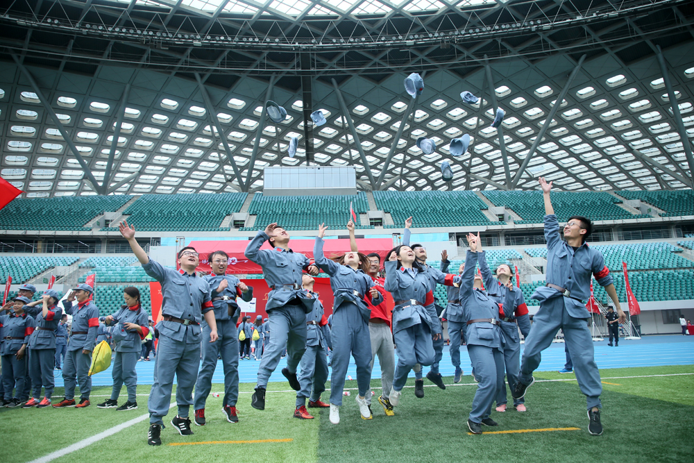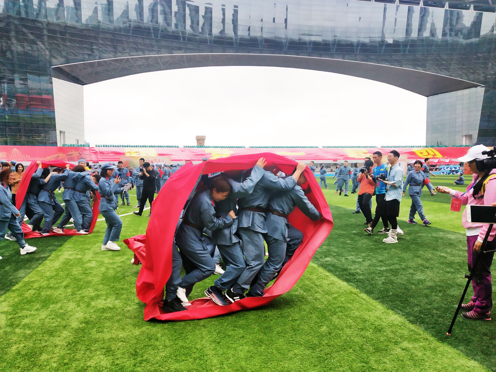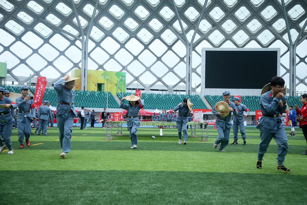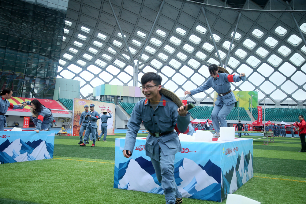 運動會結(jié)合長征路途上的艱苦環(huán)境與紅軍們的英勇事跡共設(shè)計了7種不同類型的團隊比賽項目,讓運動員在活動過程中感受革命先輩的艱辛。比賽項目分別是重返長征路、巧奪臘子口、爭當醫(yī)療兵、擊鼓送紅軍、巧渡金沙江、合力承薪火、邁向新時代。