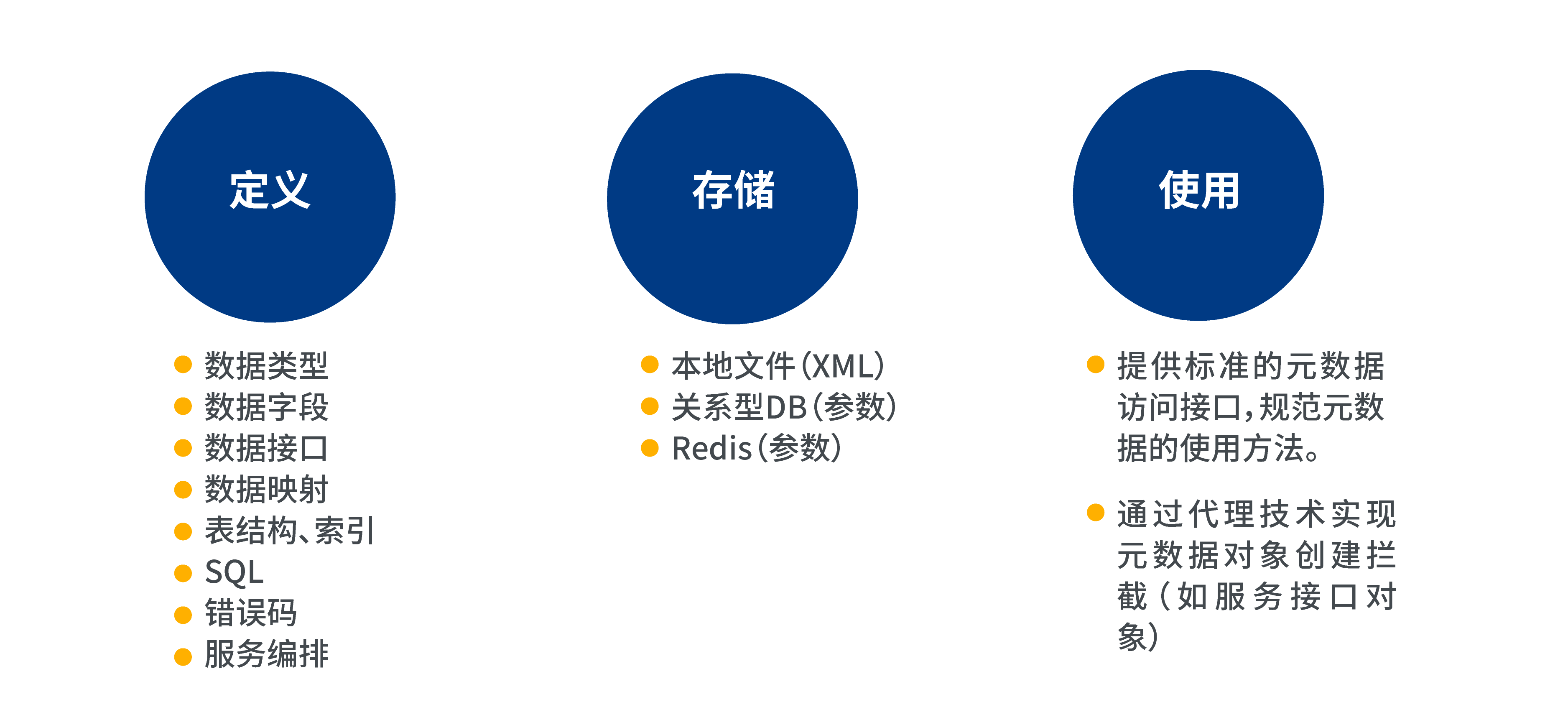 元數(shù)據(jù),向應(yīng)用組件提供類(lèi)型、字段、接口、服務(wù)編排、表結(jié)構(gòu)、SQL、錯(cuò)誤碼等數(shù)據(jù)的定義、存儲(chǔ)和使用。元數(shù)據(jù)的最大價(jià)值是支撐標(biāo)準(zhǔn)的落地,讓?xiě)?yīng)用組件的開(kāi)發(fā)標(biāo)準(zhǔn)化。