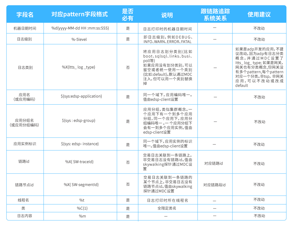 ● 應用日志分析:在日志收集和分析領域EFK是普遍采用的技術方案,但在應用日志分析的落地使用上,應用日志規范才是其核心的價值體系,對于企業級微服務日志觀測方面,日志規范體系需要在日志組件上落地以此作強規范約束;將規范中的某些關鍵數據以MDC方式注入,并按標準輸出到日志文件,日志收集組件到指定路徑收集日志數據推送至日志分析組件,日志分析組件按規范解析日志數據并進行持久化;平臺通過日志分析服務獲取日志數據。