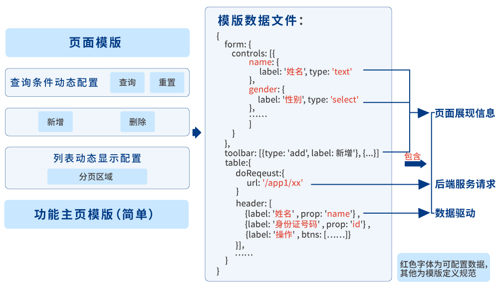 頁面模板是將特定的一些常用業(yè)務(wù)場景封裝成模板。可通過簡單的配置,實現(xiàn)頁面業(yè)務(wù)功能,適用于后臺或前端基礎(chǔ)較弱的開發(fā)者
