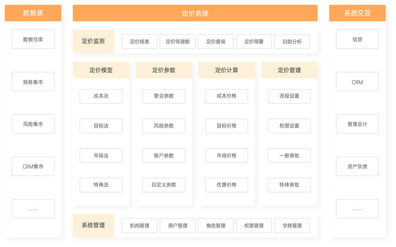 以盈利與市場競爭平衡為目標,結合銀行內部經營成本、客戶需求偏好及忠誠度,針對客戶使用的產品與服務合理定價,在平衡市場競爭、客戶體驗的前提下,提高定價水平、盈利能力。